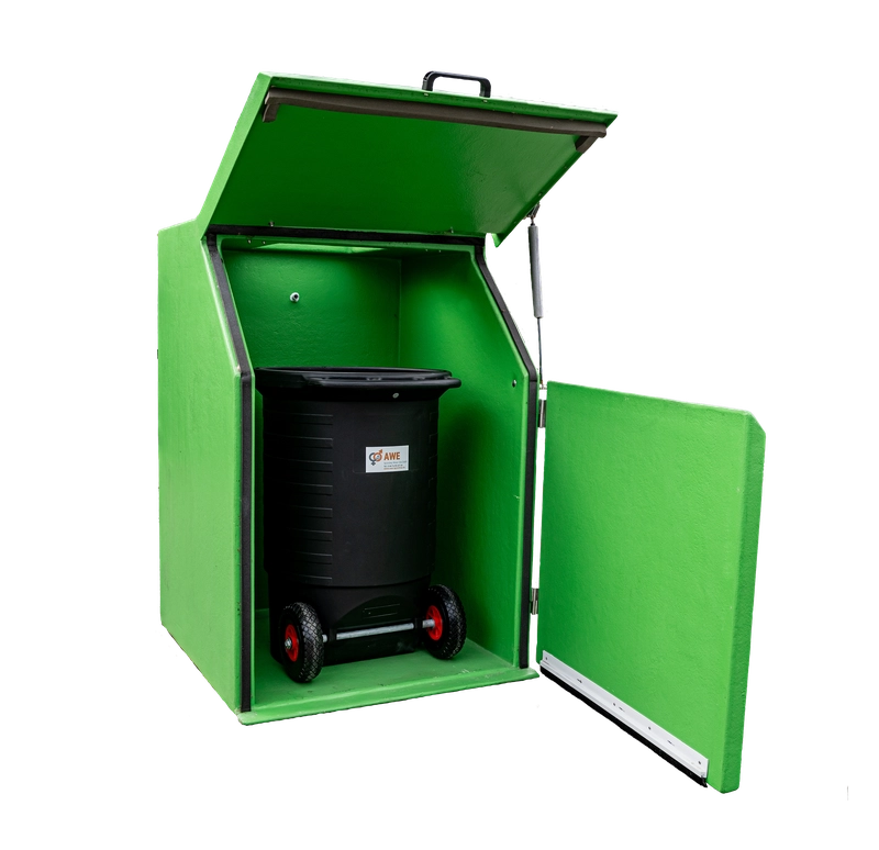 Ausgestattet mit einem abschließbaren Schwingdeckel oben und abschließbaren Türen unten. Lieferung inklusive Kühlaggregat, ohne Kadavertonne.