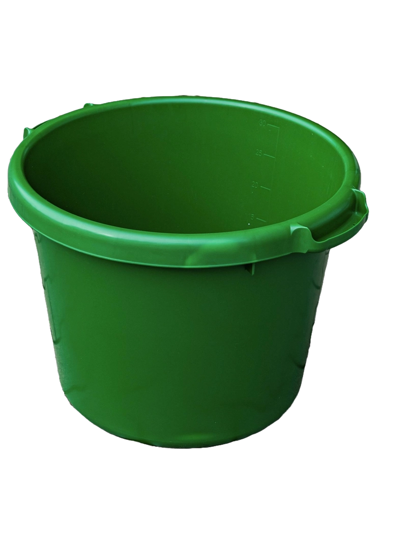 Stabiler Kübel in olivgrün mit einem Fassungsvermögen von 30 Litern. Ideal für den hygienischen Einsatz in der Tierhaltung z.B. Kadaverlagerung.