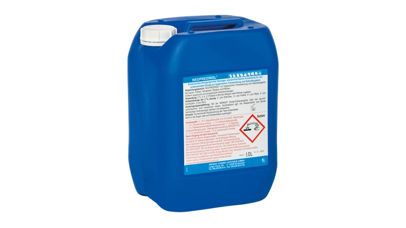 • Anwendung: 2 %, d.h. 10 Liter Wasser + 200 ml Produkt.Vorzugsweise mit der Desinfektionsspritze aufschäumen und kurz einweichen lassen. Anschließend mit Wasser abwaschen.