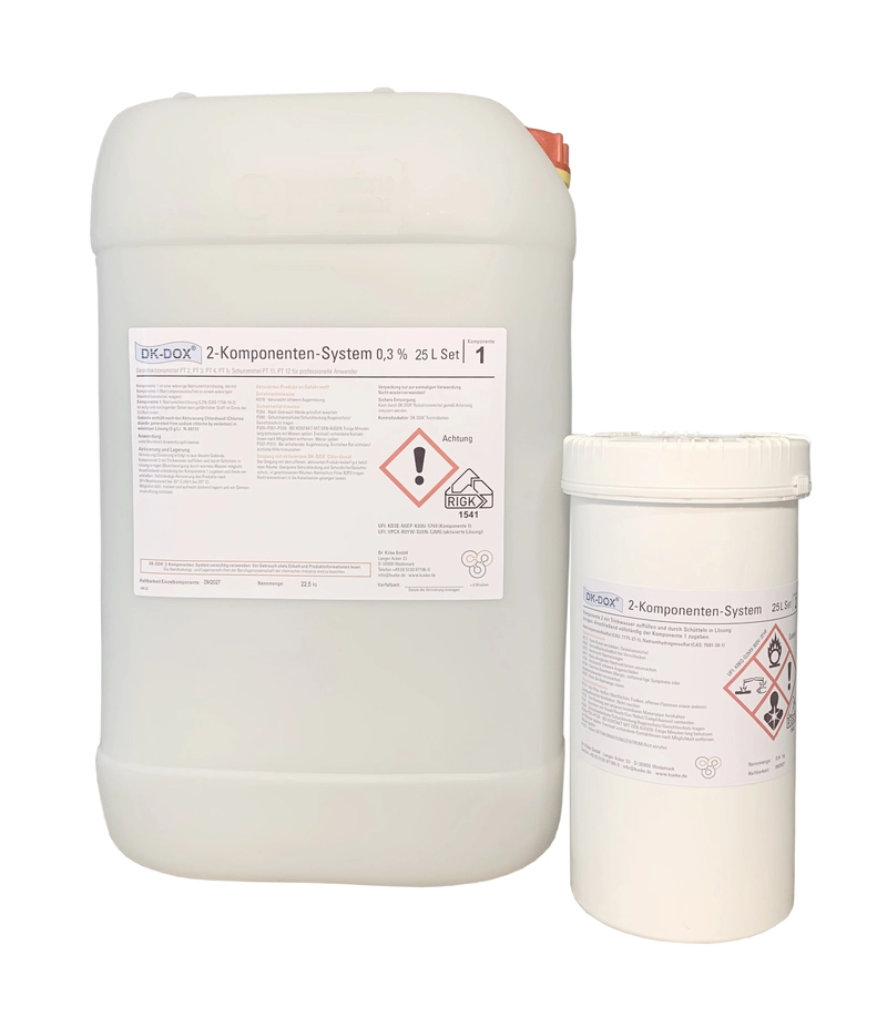 • Chlordioxid Erzeugung ohne Anlagentechnik selbst für Trinkwasseranwendungen, Konzentration der Lösung 0,3% (3g/Liter CLO2)