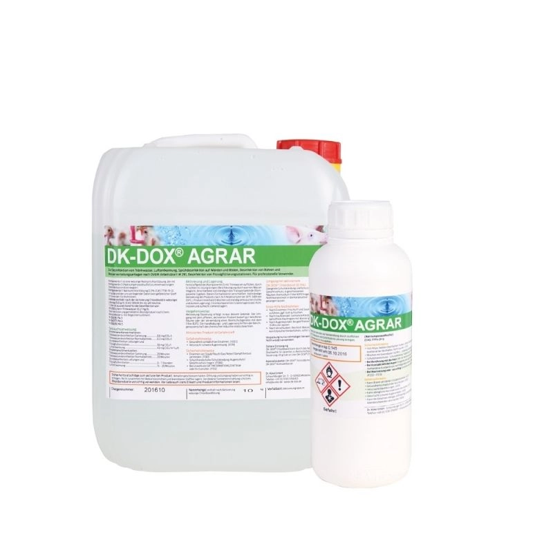 • zur permanent Desinfektion ihres Tränke Wassers im belegten Stall. Tränke Wasser max. 0,6mg/Liter = 200ml/m³ , 0,3mg/Liter = 100ml/m³